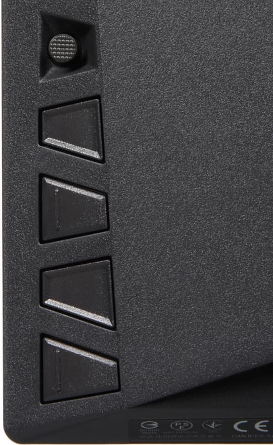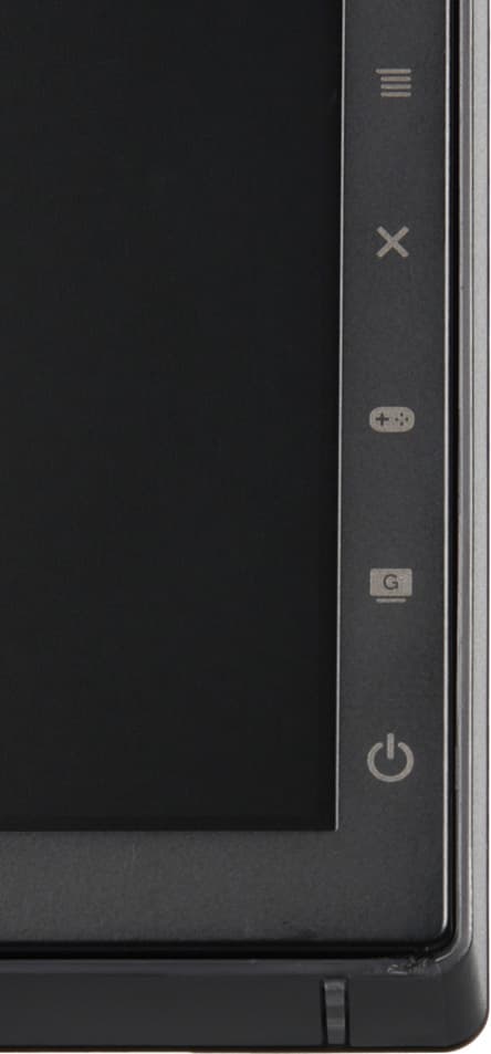 Фронтальная рамка узкая, плоская, стальная, с матовым черным покрытием. Справа внизу на вертикальной части фронтальной рамки нанесены значки кнопок, а сами кнопки расположены на задней панели напротив меток. Верхняя кнопка представляет собой 5-позиционный джойстик, а другие кнопки то вогнуты, то выпуклые с ребром.