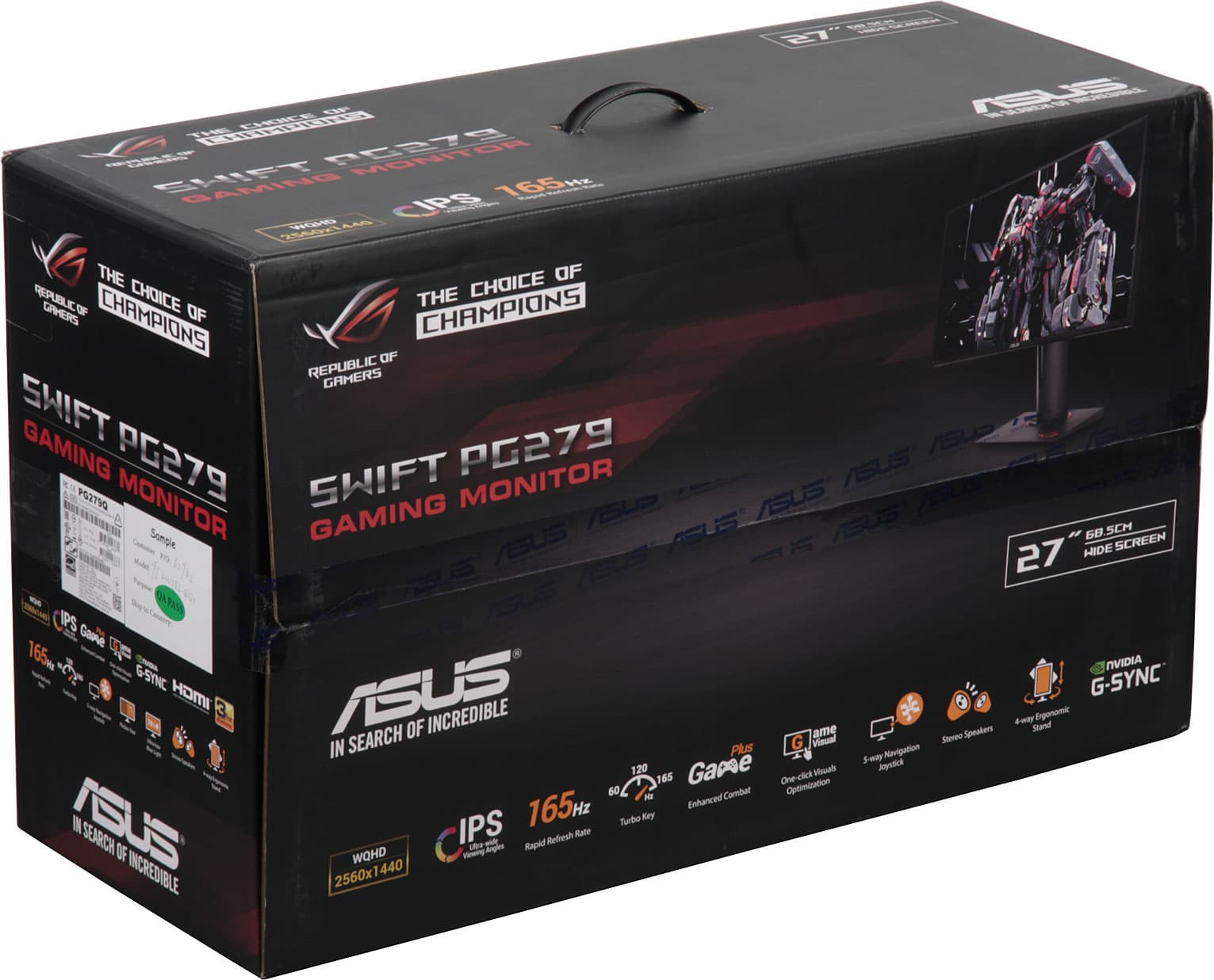 Монитор Asus PG279Q входит в серию продуктов компании Asus, объединенных общим брендом «Republic of Gamers» (сокращенно — ROG). Соответственно, полное название модели выглядит как ROG Swift PG279Q. Монитор основан на матрице IPS разрешения WQHD и с диагональю в 27 дюймов, может работать с частотой обновления в невероятные 165 Гц, также его отличает поддержка технологий Nvidia G-Sync и ULMB.