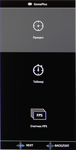 Из дополнительных возможностей в наборе GamePlus присутствуют три «геймерские» функции: прицел выбранной формы в выбранном месте на экране, таймер с обратным отсчетом от фиксированных значений и счетчик частоты кадров.