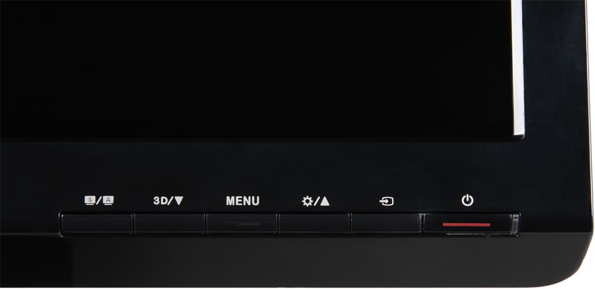 В правом нижнем углу рамки расположены кнопки управления и индикатор состояния (не очень яркий, светится синим при работе, оранжевым в режиме ожидания и не горит, когда монитор выключен).