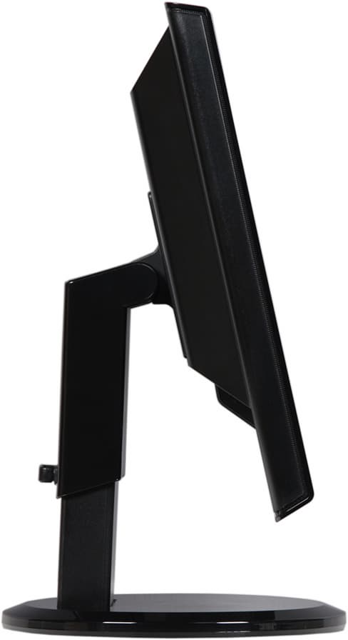 Основание подставки составлено из двух стальных дисков, соединенных винтом в центре и вращающихся относительно друг друга на 300°. Верхний диск прикрыт пластиковой накладкой и к нему винтом с барашком прикручивается стойка. Нижний диск покрыт черной эмалью и к нему приклеены прокладки из упругого материала. Площадь основания подставки довольно большая, то так как оно плоское, то эта площадь не полностью исключается из рабочей площади стола. Конструкция подставки достаточно жесткая. Стоит монитор устойчиво. При необходимости подставку можно отсоединить от блока экрана и освободившиеся резьбовые отверстия (по углам квадрата со стороной 100 мм) использовать для крепления к VESA-совместимому кронштейну.
