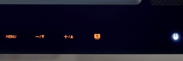 Но сначала настроим монитор, для чего придется воспользоваться блоком сенсорных кнопок в правом нижнем углу экрана. Их 5, и они подсвечены рыжим светом (за исключением индикатора состояния — он синий):