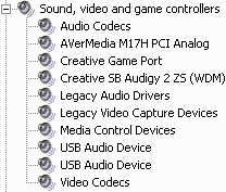 После установки в разделе Sound, video and game controllers появляется устройство AVerMedia M17H PCI Analog.