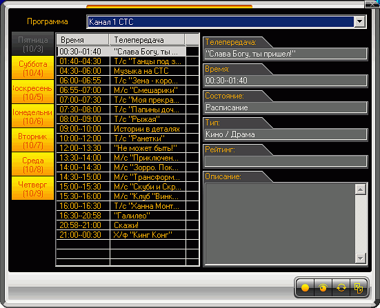 Для планирования записи согласно программе передач реализовано отдельное интерфейсное окно.