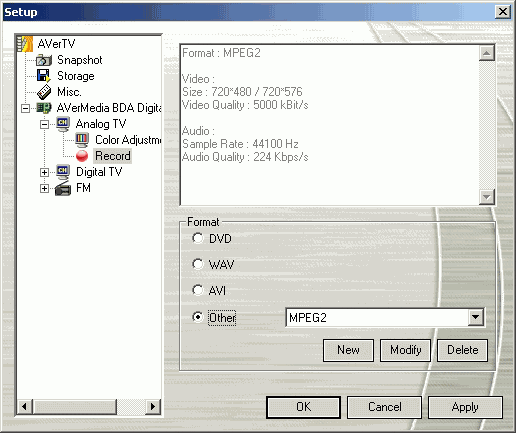 В режиме DVB-T возможна запись как программного MPEG2-потока, так и звуковой дорожки отдельно. Разделение на программный (Program Stream) и транспортный (Transport Stream) поток, содержащий дополнительную сервисную информацию, отсутствует.