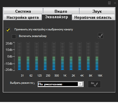Остальные настройки, изменяемые для каждого канала индивидуально, вызываются при помощи специальной кнопки на панели интерфейса либо посредством контекстного меню.