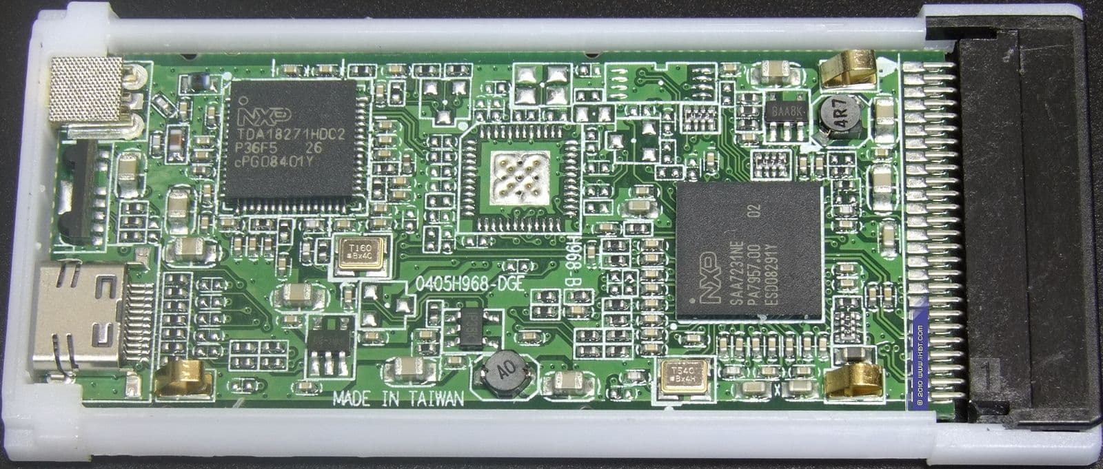 Приём сигнала осуществляется при помощи хорошо зарекомендовавшего себя мультистандартного гибридного ВЧ-блока TDA18271HDC2.
