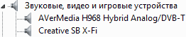 После установки в разделе Звуковые, видео и игровые устройства диспетчера устройств появляется AVerMedia H968 Hybrid Analog/DVBT.
