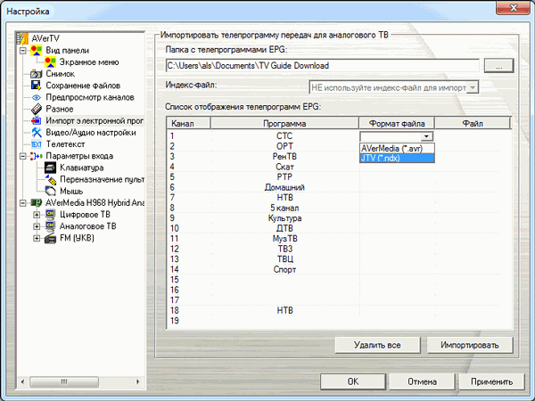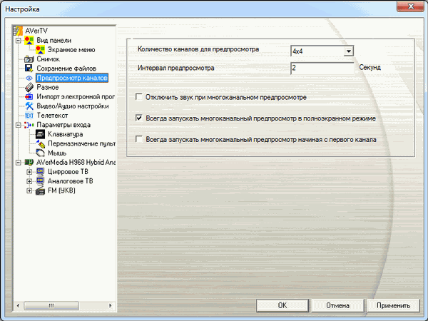 Ручная настройка таких параметров как VPID (Video Program Identification) и APID (Audio Program Identification) традиционно невозможна. Впрочем, не менее традиционно необходимости в последней при тестировании тюнеров от AVerMedia ни разу не возникало, не стал исключением и AVerTV Hybrid AirExpress.