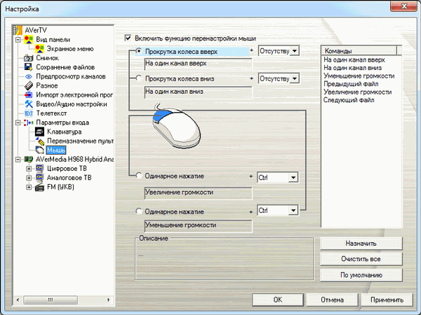 и кнопок/колеса стандартной трёхкнопочной мыши. Поддерживаются комбинации «кнопка мыши + кнопка-модификатор».