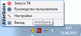 В системный трей помещается иконка программы AVerQuick, отвечающей за работу планировщика и пульта ДУ.