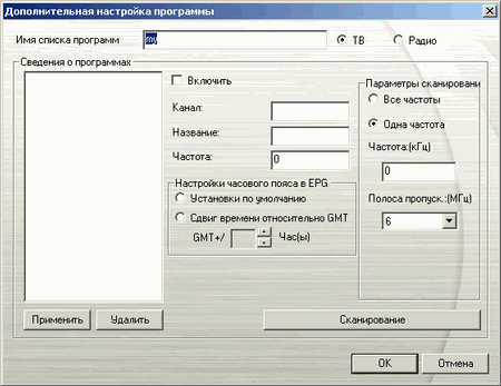 К названию канала, частоты и полосы пропускания добавились настройки часового пояса для использования EPG (Electronic Program Guide). Ручная настройка таких параметров как VPID (Video Program Identification) и APID (Audio Program Identification), по-прежнему, невозможна. Впрочем, необходимости в последней при тестировании тюнеров от AVerMedia пока ещё ни разу не возникало.