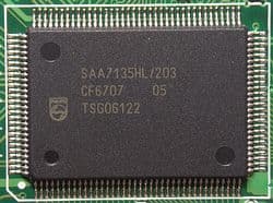 9-битный АЦП Philips SAA7135HL/203 поддерживает все существующие стандарты аналогового телевидения. От SAA7135HL/101 этот чип отличается отсутствием Dolby-процессора. При работе с DVB-T он используется в качестве моста.