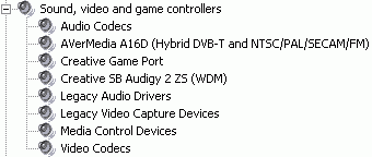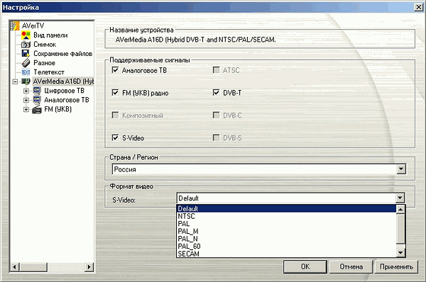 После установки появляются устройство AVerMedia A16D (Hybrid DVB-T and NTSC/PAL/SECAM/FM) в разделе Sound, video and game controllers