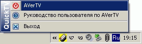 и иконка программы Quick TV, отвечающей за работу планировщика и пульта ДУ, в системном трее.