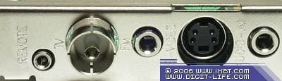 На планке находятся разъём для подключения ИК-датчика пульта ДУ mini-jack 2,5 мм, антенный разъём, гнездо для подключения FM-антенны mini-jack 3,5 мм (!), S-Video разъём для подключения внешних источников аналогового видеосигнала и линейный аудиовход mini-jack 3,5 мм.