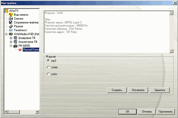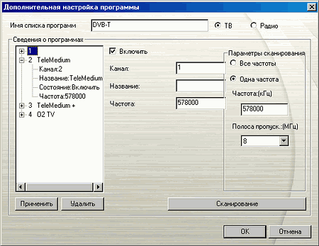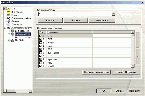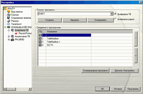 Допускается редактирование названия канала, частоты и полосы пропускания. Ручная настройка таких параметров как VPID (Video Program Identification) и APID (Audio Program Identification), по-прежнему, невозможна. Впрочем, традицию успешного поиска цифровых каналов, начатую предыдущими попавшими к нам моделями производства AVerMedia с поддержкой DVB-T, Hybrid+FM PCI не нарушил.