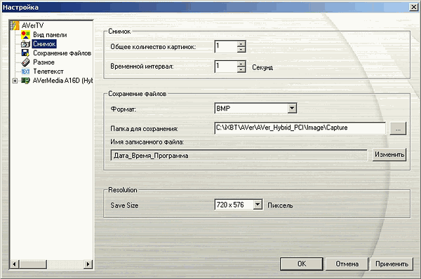 В настройках захвата кадров к количеству, интервалу между снимками, формату и префиксам (дата, время, сигнал, программа, пользовательский) добавился выбор разрешения. Максимальное количество скриншотов в серии составляет 100.