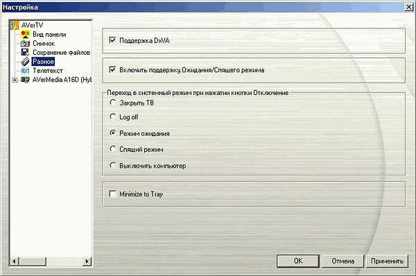 Со времени нашей последней встречи с новым ПО от AVerMedia (см. обзор AVerTV USB MCE) программисты компании провели заметную работу над ошибками. Радует исправление отмеченных в обзоре AVerTV USB MCE шероховатостей локализации. Отсутствие проблем с отображением русских букв в названиях каналов и заметно более корректный перевод некоторых опций позволяют не испытывать дискомфорта при работе с русскоязычным вариантом интерфейса. Ревнителям английского языка не возбраняется удалить файлы rcrus.lng и rcrus.dll из Program FilesAVerTV 6.0configlang.
