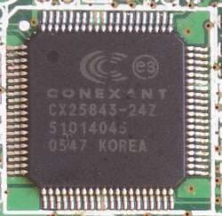 АЦП не изменился, это снова 10-битный CX25843 (ревизия 24Z) производства Conexant Systems, Inc.. Чип имеет трёхполосный эквалайзер и регулировку баланса, поддержка которых в штатном ПО, к сожалению, не реализована.