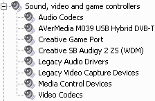 После установки в разделе Sound, video and game controllers появляется устройство AVerMedia M039 USB Hybrid DVB-T.
