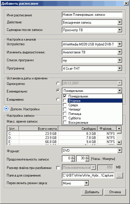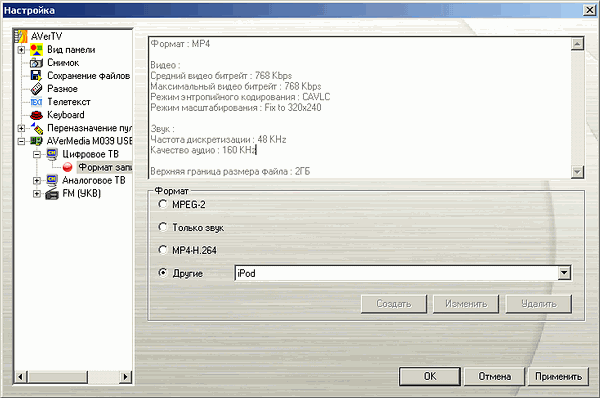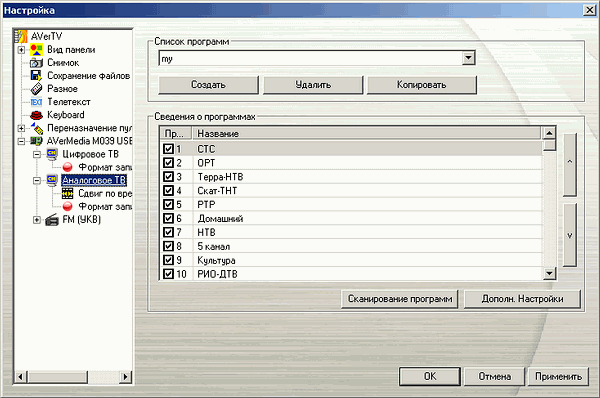 Ручная настройка таких параметров как VPID (Video Program Identification) и APID (Audio Program Identification) отсутствует, впрочем, необходимости в последней при тестировании тюнеров от AVerMedia пока ни разу не возникало.