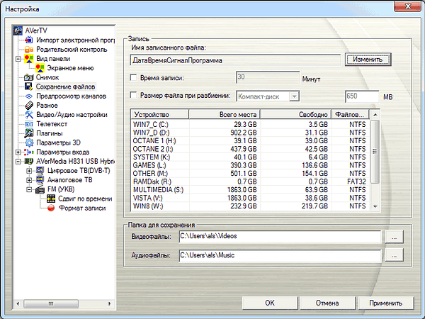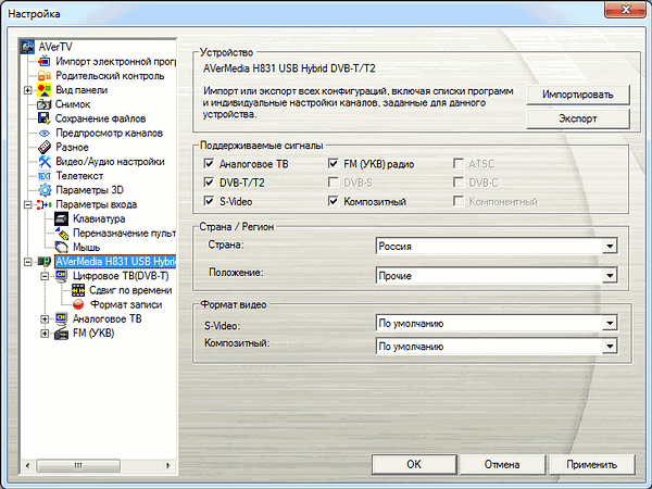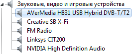 После установки в разделе Звуковые, видео и игровые устройства появляется устройство AVerMedia H831 Hybrid DVB-T/T2.