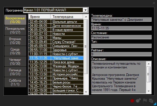 Реализована работа с электронной программой передач при условии наличия таковой в цифровом канале.