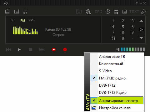 К разряду полезных мелочей можно отнести анализатор спектра, вызываемый посредством контекстного меню на дисплее.