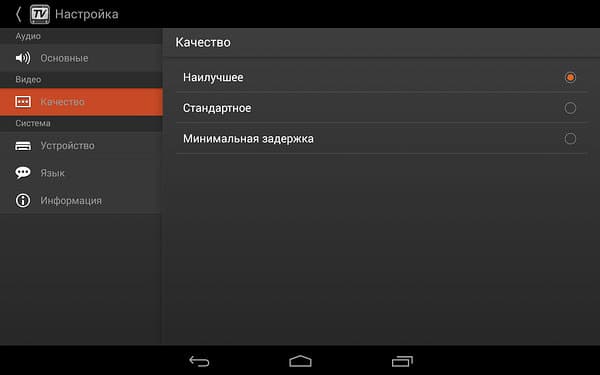 настройки качества видео (наилучшее, стандартное, минимальная задержка),