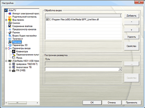 Как и с поддержкой программы передач в формате JTV, программисты AVerMedia ликвидировали отставание от Beholder и Gotview в этой области. Список стандартных модулей невелик, но желающие могут на свой страх и риск попробовать свободно распространяемые плагины Beholder.