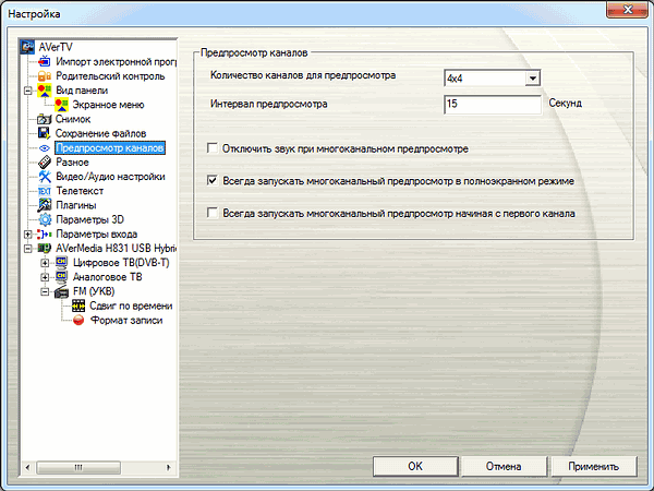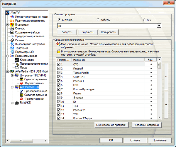 Возможно подключение до 5 устройств, поддерживается работа с несколькими устройствами AVerMedia. При запущенной программе AVerTV 3D в цифровом режиме транслируется только активный канал, в аналоговом режиме трансляция недоступна, о чем выводится соответствующее предупреждение.