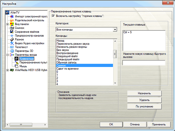 - настройка «горячих» клавиш;
