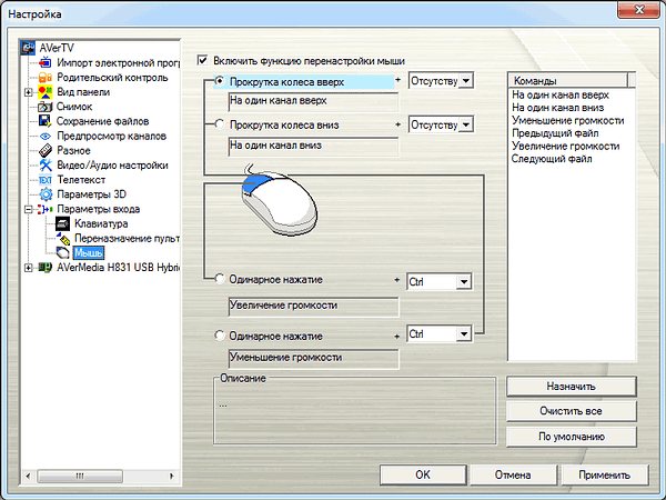 и кнопок/колеса стандартной трехкнопочной мыши. Поддерживаются комбинации «кнопка мыши + кнопка-модификатор».