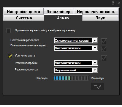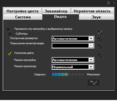 - индивидуальные настройки изображения, звука, масштабирования и шумоподавления для каждого канала;
