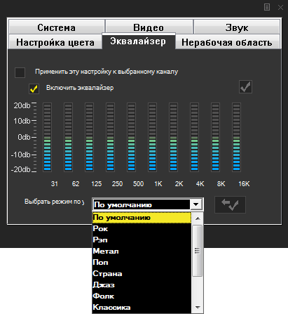 Остальные настройки, изменяемые для каждого канала индивидуально, вызываются при помощи специальной кнопки на панели интерфейса либо посредством контекстного меню.