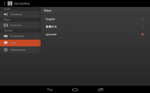 В приложении (во время тестирования использовалась версия 1.0.27.20141020) доступны настройки звука в виде выбора каналов и звуковой дорожки,
