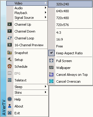Положительные эмоции, связанные с наличием русского интерфейса, несколько омрачают проблемы с отображением названия источника и русских названий каналов на основной панели и не совсем корректный перевод некоторых пунктов (Бесплатно вместо Свободное (Free) при выборе соотношения сторон или абсолютно не подходящая по смыслу Быстрая перемотка вместо Advance в настройках каналов). Впрочем, для пользователей, не знакомых с другими языками (программа мультиязычна), представленный вариант локализации вполне приемлем. К тому же, замеченные недостатки несложно устранить в будущем. Язык интерфейса зависит от региональных настроек операционной системы, возможность выбора языка в явном виде отсутствует. Для получения английского меню следует удалить файлы rcrus.lng и rcrus.dll в Program FilesAVerTV 6.0configlang.