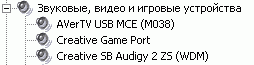 После установки в разделе Sound, video and game controllers можно обнаружить устройство AVerTV USB MCE.