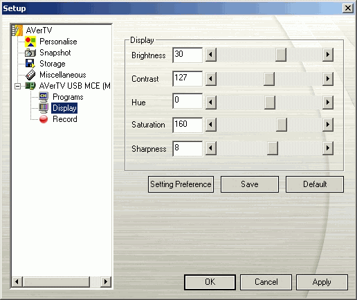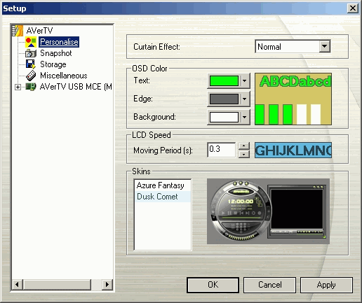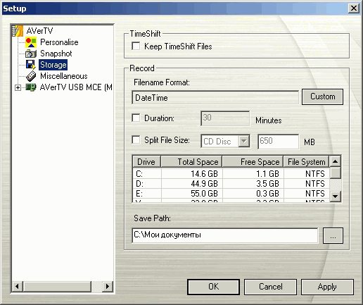Настройки, имеющиеся в разделе AVerTV USB MCE позволяют выбрать регион и видеостандарты для низкочастотных входов (для S-Video и композитного входа отдельно).