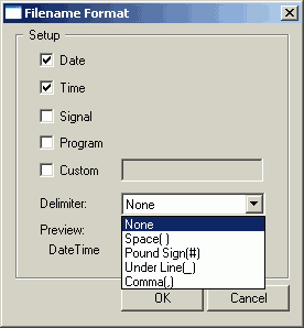 Здесь же настраиваются варианты префиксов в названиях полученных при записи файлов (дата, время, сигнал, программа, пользовательский).