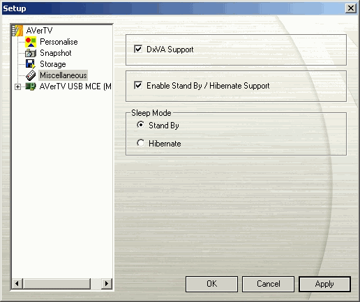 Раздел Miscellanious (Разное) содержит опции включения/отключении аппаратного ускорения видео DxVA и активацию поддержки режима ожидания/спящего режима.