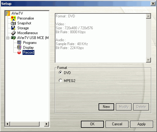 Доступны ручная установка разрешения, видео-, аудиобитрейта и частоты дискретизации. Как и у AVerTV PVR 150 Plus, поддержка переменного битрейта при записи отсутствует.
