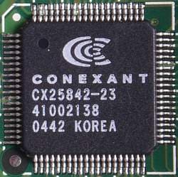 Для аналогово-цифрового преобразования используется последняя разработка Conexant Systems, Inc. — 10-битный АЦП CX25842-23. От знакомого нам по устройствам других производителей CX25843 этот чип отличается отсутствием поддержки декодирования стереозвука в формате BTSC, EIA-J, что в условиях отсутствия такового нельзя считать недостатком.