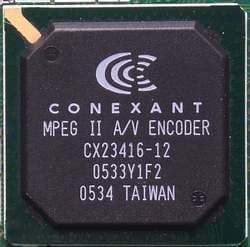 Аппаратное сжатие в MPEG1/2 осуществляется при помощи популярного в настоящее время энкодера Conexant CX23416-12.
