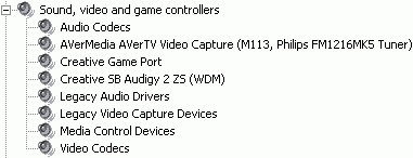 После установки в разделе Sound, video and game controllers появляется устройство с длинным названием AVerMedia AVerTV Video Capture (M113, Philips FM1216 MK5 Tuner),