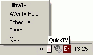 а в системном трее — иконка программы Quick TV, ввиду отсутствия пульта ДУ отвечающей только за использование планировщика.