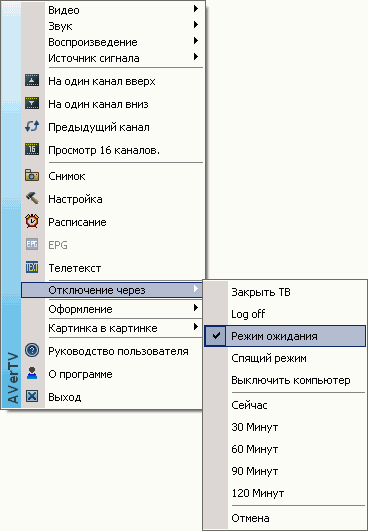 Таймер отключения с интервалом в 30 минут и диапазоном от срабатывания сразу после активации до 120 минут позволяет не только закрыть программу, но и выключить компьютер/перевести его в энергосберегающий режим.
