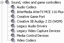 После установки в разделе Sound, video and game controllers ожидаемо появляется устройство AVerMedia AVerTV MCE 116 Plus.