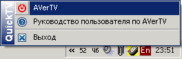 Разместившаяся в системном трее иконка сигнализирует о начале работы резидентной программы Quick TV, отвечающей за работу планировщика и пульта ДУ.